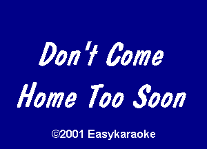 Don't Come Home Too Soon