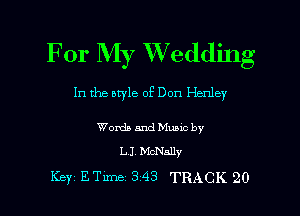 For My Wedding