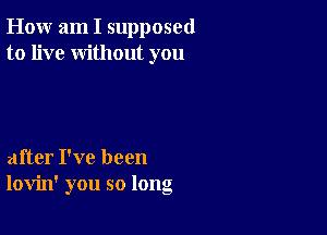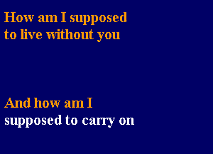 How Am I Supposed To Live Without You