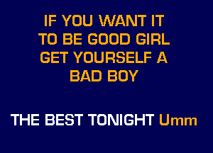 If You Want It To Be Good Girl (Get Yourself A Bad Boy)
