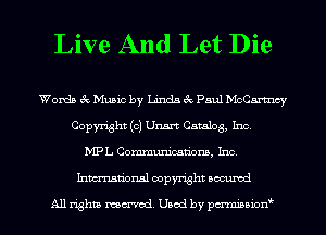 Live And Let Die