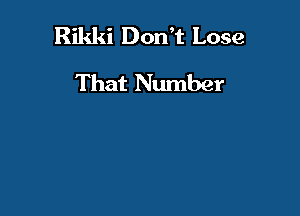 Rikki Don't Lose That Number