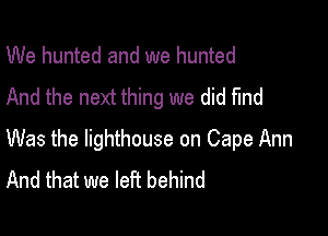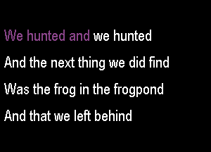 We Hunted And We Hunted