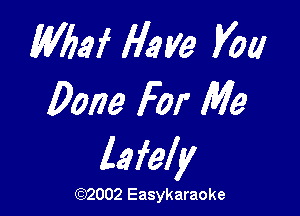 What Have You Done For Me Lately