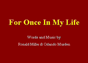 For Once In My Life