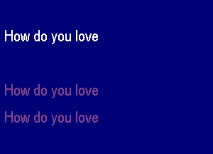 How Do You Love