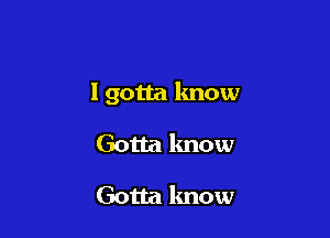 I Gotta Know