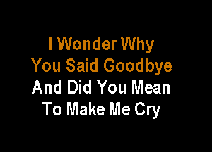 I Wonder Why You Said Goodbye
