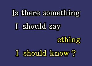 Is There Something I Should Know?