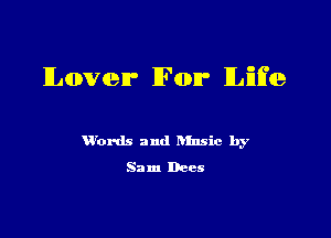 Lover For Life