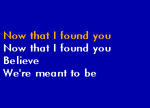 Now That I Found You