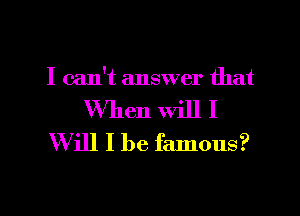 When Will I Be Famous